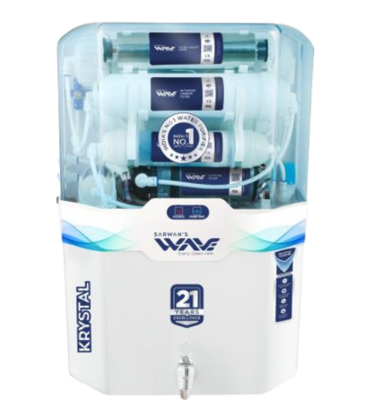 Smart Features: - Krystal Residential RO Water Purifier. Water storage tank 13 Ltrs. Dual Mode Hanging / Tabletop as per your convenience. Digital Screen to monitor machine status. This system is also available with transparent storage tank. ABS food grade storage tank and cabinet quality. This system is also available in RO + UV with double filtration. Dimensions: D 7.7″ x W 14.7″ x H 21″